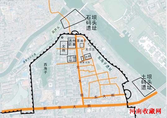 通州城东城门(标红色块范围为受地铁站建设影响的东门遗址)