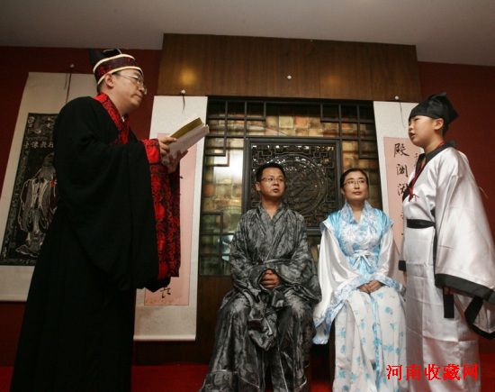 7月30日,“兹有学童郭殿禹,祖荫深厚,家风清正。”在山西太原一处酒店内回响起朗朗诵读声,12岁男童郭殿禹着汉服、行汉礼、习翰墨、射天地四方。与此同时,司仪卫方正宣读告文,向宾客宣告男童由童年进入少年时期。