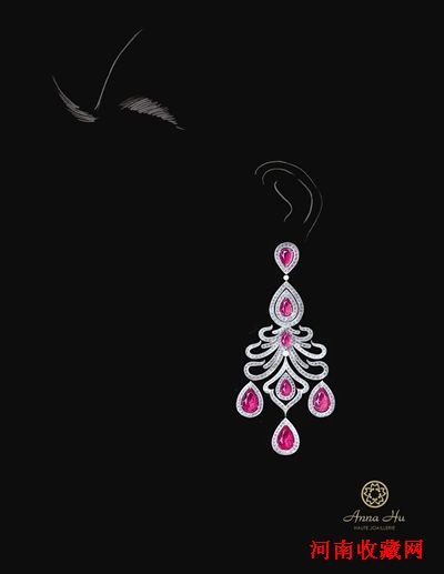 年轻珠宝艺术家ANNA HU的作品Alexandrina维多利亚女王耳坠,以高于平均底标2倍的价钱,15000美元得标(佳士得)。