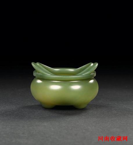 中国玉雕大师蒋喜作品 青玉琴炉 5.1×5.0×3.4cm 无底价