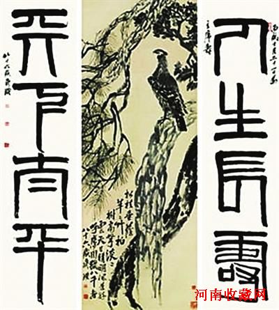 去年的春拍市场上,最受瞩目的拍品当属齐白石最大尺幅作品《松柏高立图·篆书四言联》(俗称“大老鹰”)。2011年5月,齐白石的《松柏高立图·篆书四言联》从8800万元起拍,最后以3.7亿元的落槌价被买走,加上15%的拍卖佣金,最终总成交价为4.255亿元,刷新了全球中国近现代书画成交纪录。这件作品更是让齐白石登上了近现代艺术天价王的第一宝座。
