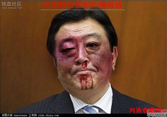 据说,昨天晚上,野田被中国人民揍得鼻青脸肿.....