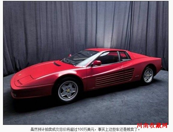 每辆车都有一个起拍价,其中一台Mondial T起拍价1.7万欧元,两辆Testarossas起拍价2.5万欧元,一台F40起拍价18万欧元,一台1965年的法拉利275GTB起拍价40万欧元。而其他法拉利车型包括两台328 GTS、一台348 TS、一台365GTB/4 Daytona、一台456GT和一辆F355 Berlinetta。(完)