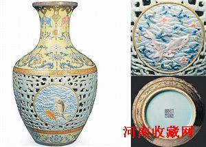 清乾隆粉彩镂空瓷瓶。2011年在英国被拍成天价,中国买家至今未付款,面临着二次上拍的命运。