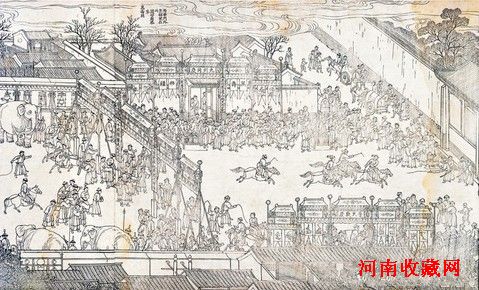 《万寿盛典图》是中国古代美术史上的巨幅杰作,有绘本,也有刻本。其绘本深藏故宫,难得一见。而刻本虽亦珍稀,但在古籍市场上还能惊鸿偶现。郑振铎曾评价说: “《万寿盛典图》除写皇家的仪仗外,并把当时北京的民间情况都串插进去了,是重要的历史文献。绘者尽心竭力,刻者也发挥其手眼的所长,精巧地传达出这幅画卷的意境来。在美术史上,这样长的绵绵不断的画卷,是空前的,其所包罗的事物景象的多种多样,也是空前的。从山水、花卉、界画、人物到道、释无一不有。像这样宏大的长卷恐怕世界上是不会有第二幅的。”