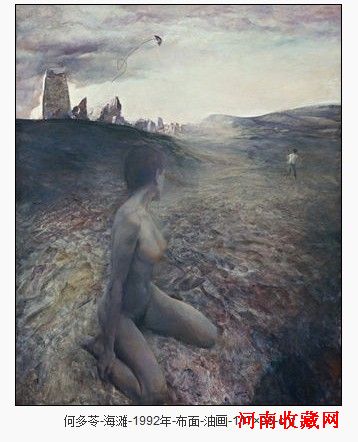 何多苓1992年在美国创作的《海滩》,是其转型期重要且极为独特的作品。1980年代,何多苓即以《春风已经苏醒》引起全国轰动,随后凉山彝族人题材的作品亦大获好评,但1990年的美国之行令其改变创作心境,他渴望去掉特定的地域、时代和文化的限定,创作出有更广阔接受场域,可容纳更丰富隐喻层次的作品。《海滩》代表了这个重大转变,既独立于画家上一个怀斯风格与新边疆风格的阶段,亦非其后来援引古画时期的开端。可以说,《海滩》是独一无二的。