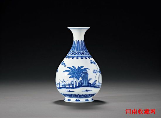 清乾隆--青花竹石芭蕉图玉壶春瓶--29.3cm.High