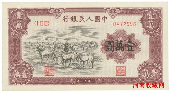 纸币专场近千件拍品。其中,光绪二十四年中国通商银行上海通用银圆票伍拾圆样票,近全新品相十分难得;民国元年交通银行五色旗图银圆票拾圆流通票改作存档样票,加盖太原地名,色彩艳丽,存世罕少。另各版别人民币二百五十余种,其中,一版币六珍之首壹万圆“牧马”流通票,色彩饱满,品相一流;伍仟圆“蒙古包”流通票,品相为目前存世“蒙古包”流通票中的顶级品。