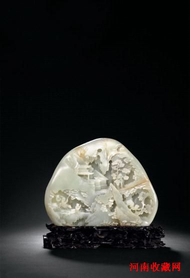 一件不可多得的清乾隆玉雕精品——白玉雕庆寿图山子。这件玉山的琢制年代可以肯定是乾隆中后期,这时候上品的玉材己经成规模的进入中原地区。因为材料的充裕为大师级的玉匠提供了物质条件。当琢治,雕刻成为一种工作的时候。他们便为这门五千年的传统手艺,真正契入了文化高度。此件山子用料讲究,质地坚致,纯洁凝腻。画面雕刻层次丰富,线条流畅,布局章法有度,质感立体生动,极富笔墨韵味,景有尽而意无穷,此中纹饰各有寓意,蕴含喜庆、如意、福寿延年的吉祥涵义。