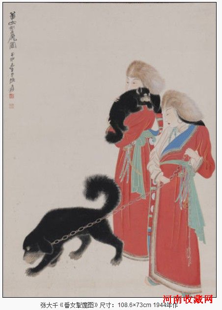 对这件张大千《番女掣庬图》,保利总经理赵旭(哪吒闯世界(微博))已经忍不住在微博上热情发表对它的称赞:此作前几日在香港展览时,引起轰动;匡时老总董国强(微博)的评价则锦上添花:这一题材,一个番女牵藏獒的或不牵藏獒的都出现过多幅,而两个番女,两只獒的还真没见过,是一件难得的奇品;藏家马德光微博则这样定位: 秋季拍卖最重要的张大千人物精品。