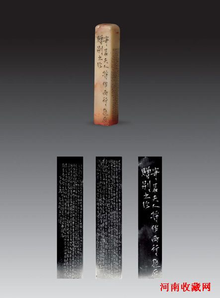 忆梅庵专场中,最为稀见的当属傅抱石赠送给罗夫人刘先(原名刘芳)女士的微刻方章。此方章为1935年日本东京傅抱石书画篆刻作品展的原件。原印面为“一生都只为花忙”。傅先生将印面磨去后改刻为刘芳,赠予罗夫人。在这方高4厘米,边宽仅为7毫米的印章上,傅抱石先生用神鬼之笔刊刻了二百多字的“百花诗”,堪称绝妙。傅抱石细字长跋的篆刻作品历来极受学界赞誉,被称作“精神雕刻”。据有关资料记载,在傅抱石先生的篆刻生涯中,微刻边款的印章一共有九件,如今一件藏于江西省博物馆,为馆藏一级文物,四件藏于南京博物院,为傅抱石家属捐献,其余四件均已流散。此次上拍的微雕方章,为拍场首现的傅抱石微刻作品,弥足珍贵。