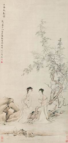 华嵒《二乔玩春图》 131×62cm