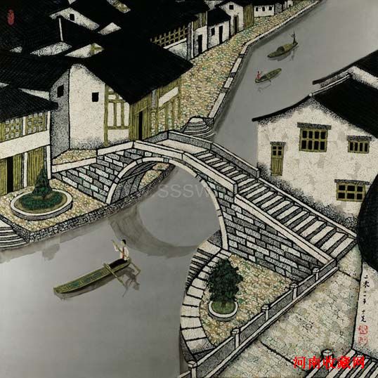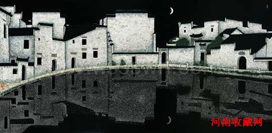 乔十光《徽州民居—宏村月塘》大漆,138万成交
