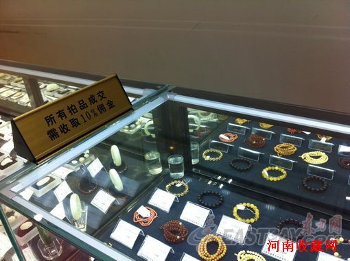 东方网记者日前来到这家拍卖公司一探究竟。只见位于威海路上该店是某拍卖有限公司的分店,店面的招牌及店门口的滚动广告上赫然标明经营范围,包括翡翠白玉、世界名表、珠宝钻石和红木家具等四类。记者走进店中,只见店内的两排玻璃柜台里陈列着各式珠宝首饰、玉器和手表,在靠里的桌子上则摆放着一些书画,一角的柜子里安放着紫砂壶等工艺品,每件物品前都有一张标签,注明该物品的“起拍价”和“拍品号”,乍一看和一般的拍卖公司没有两样。