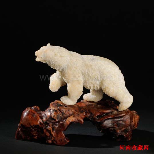 本场交流会中,一件林亨云大师最擅长的以熊为题材的雕刻作品特别引人瞩目,这件作品巧用焓红石质细材巨的质地和赭黄近米白的色调,将熊赋予人的形态和生命力,熊毛的深浅、纹理、走向、疏密皆表现地淋漓尽致,令人赞叹不已。这些雕刻大师在寿山石雕刻艺术上都具备极高的造诣,作品已经得到了市场的充分认可。