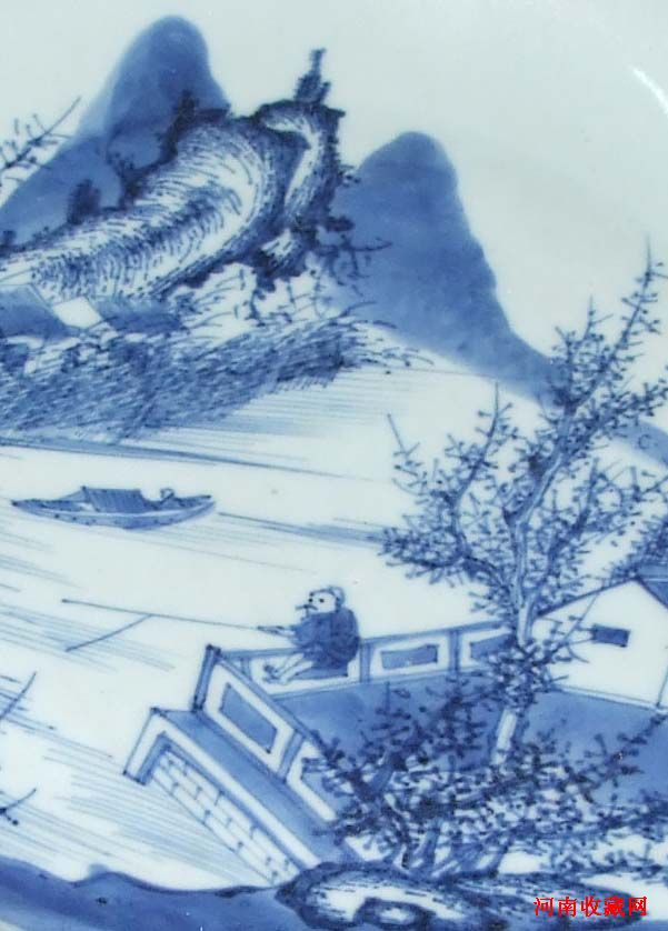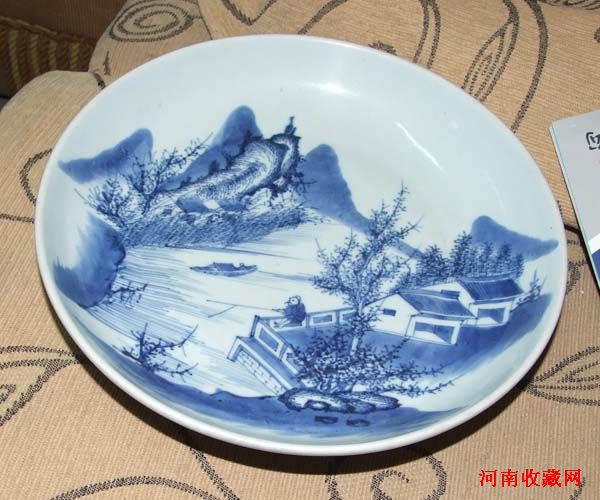 前五、六年,我玩明清彩瓷时,曾在该朋友处买过两对民国嫁妆瓶,后来都挣钱了。前几天,又在朋友处看到了朋友的珍爱“清雍正山水青花”八寸盘,朋友说:雍正在位13年,山水盘很少见,所以很喜爱,自己这么多年没出手。