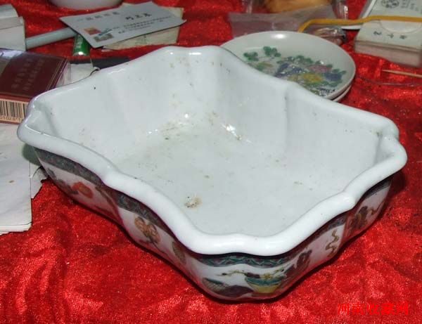 民国八宝纹饰粉彩水仙盆,釉厚、完整、大开门。