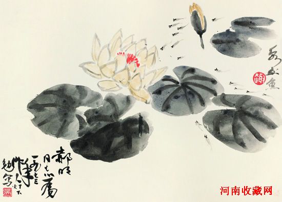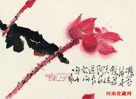 这批作品虽都为小品,但小而精,多件作品值得品味,其味无穷,画家的生活情趣和艺术格调跃然纸上。《奔牦》、《睡莲》(与黄胄合作)即为吴作人的兴来之作,从中我们就可以发现诸多看点。这批作品中亦两件石鲁之小品,《春水送暖》、《秋荷》。石鲁奇崛之画风极具视觉冲击力,此作应该是石鲁艺术高峰期之作,即七十年代作于西安。画中三只墨笔鸭子,春红零落,一股春意盎然之气暖人心脾。落款之书犹写似画,印章为典型的“画印”。