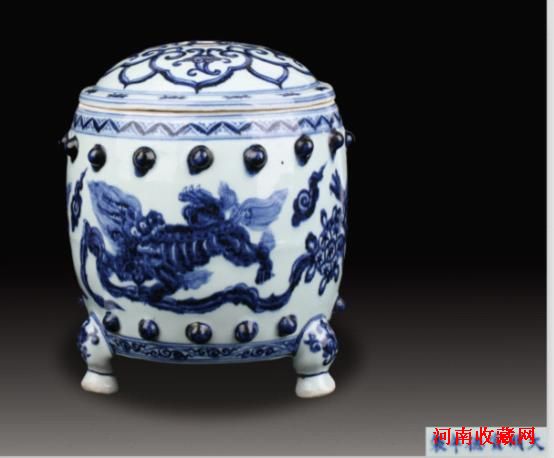青花瑞兽鼓钉香薰炉:口径:18.4CM 底径:16 高:25CM