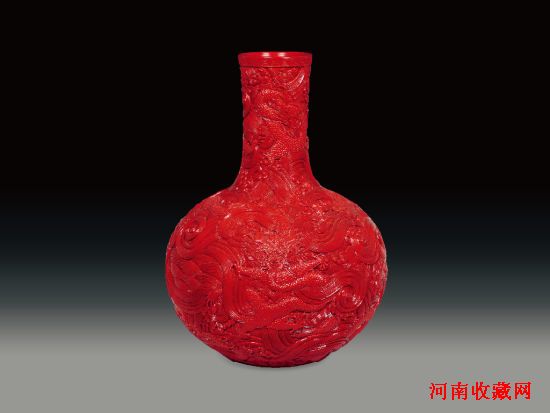 此件作品用瓷土成功模仿了漆器制品的艺术风格,雕刻层次分明,技艺复杂而精细,虽通体雕刻却又不失线条的婉转流畅,工艺难度极大。而漆器色泽、质感的完美表现也充分体现了施釉工艺的高超。整器大气庄重,颇具乾隆官窑瓷器之神韵。