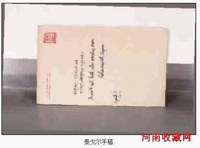 2012上海工美拍卖秋季大拍将于12月24日在海仑宾馆举槌。此次拍卖,有一件泰戈尔赠孙大雨手稿十分引人注目,这件手稿的释文大意是:奉承、献殷勤者的言行举止不可信;向女人求爱的人的言行举止是不真实的。落款为:罗宾德拉纳特·泰戈尔,1924年4月5日。
