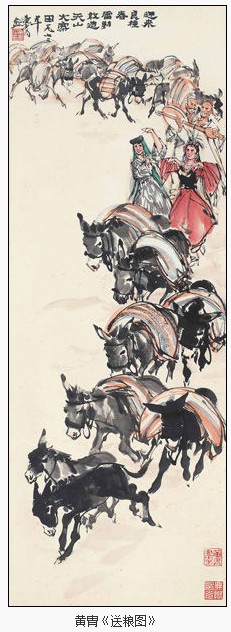 近现代书画部分,黄胄1973年作品《送粮图》241.5万元夺魁。陆俨少《荒江钓艇》以184万紧随其后。该作作于1978年,陆老自题签条,多次出版著录,曾为陆老夫人朱燕因珍藏。作品上部由层峦的远山及萦绕其间的云气构成,下部则由河岸沙渚及垂钓者构成,上下两部分通过贯穿于画面的江水所衔接,构思巧妙,自然和谐。整幅作品从上至下体现出了实—虚—实的画面关系,而局部之中也同样富于虚实关系的变化,使整幅作品充满了律动感。画家对山石的描绘体现出了其精湛的笔法,下笔快速而准确,笔笔带劲,近处更是以浓墨粗笔来表现山石的转折,奇峻坚实之感顿出,兼以石青、赭石两色表现山石的正反两面,形象生动。画中还展现了画家对云的独特描绘,勾云法与块云法并用。山前用焦墨点出,葱茏苍翠,山后勾云写出,若时出时没,兼用留白之法,计白当黑,使白气回环,蜿蜒曲屈,得自然之趣,神采气扬。江水以留白处理,宛若从天而降,简洁明了,近处两艘小艇停在水中,各有一士盘坐垂钓,成为全画的点睛处理,增添了生活气息,堪为入箧精品。