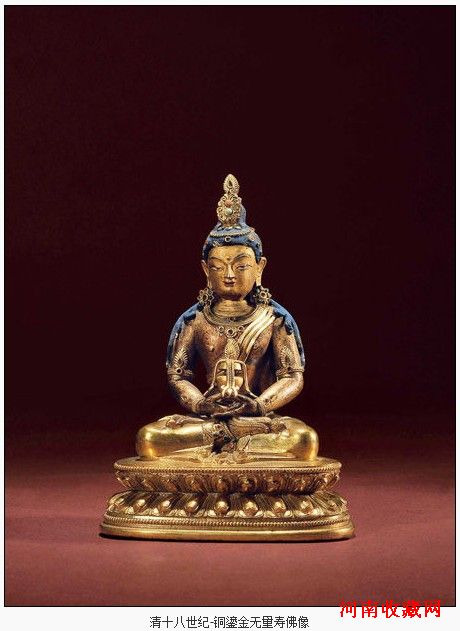 在“玉器工艺品”专场中,“梵化无相——佛教文物专题”, “清十八世纪 铜鎏金无量寿佛像”55.2万折桂;“清早期铜送子观音像” 49.45万元成交。此尊观音盘发成髻,面庞丰腴,衣着飘逸,双目宛若未开敷的莲苞,眼睑低垂,目光慈爱,注视着身旁童子,小童子侧耳站立,形象俏皮可爱,似乎在聆听观音谆谆教诲。整尊造像包浆凝厚,造型优美,营造出和谐温暖的氛围,在存世的此类送子观音中可谓上品之作。除此之外,“明铜鎏金弥勒像”40.25万元成交;“清 绿地海水云龙纹龙袍”23万元成交;“清蓝地海水云龙纹龙袍”20.7万元成交。