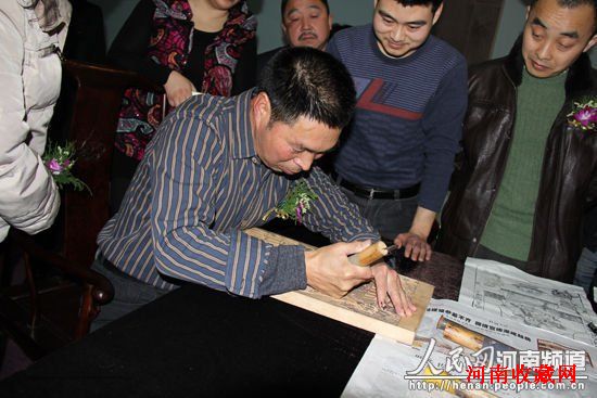 2013年1月8日,河南省安阳市滑县老店镇马兰村,国家级非物质文化遗产滑县木版年画百年老字号“永顺号” 画坊,第27代传承人耿建设正在给滑县木版年画修剪、粘贴、装订,制成精美的收藏纪念册。