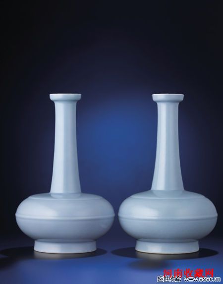 清雍正 天蓝釉弦纹盘口瓶(一对) 成交价:3,426万港元 香港佳士得