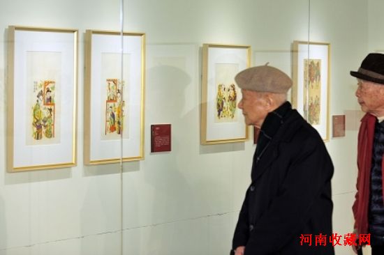 1月18日,参观者在观赏河南朱仙镇木版年画参展作品。
