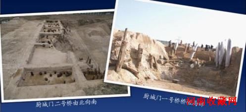 厨城门一号桥目前已确定至少长880米,两侧桥桩间距约18米,是迄今所发现的最大的秦汉木梁柱桥梁遗址,也是现知同时期全世界最大的木构桥梁。