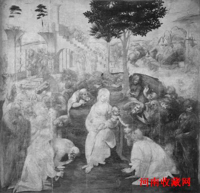 事情的经过大致如此:教士们委托达・芬奇创作一幅圣坛装饰画,期待他展现一个庆贺耶稣降生的传统画面,而达・芬奇却交上一幅革命性的另类作品。塞拉西尼就此推断出这幅画随后的命运:因为教士们拒绝接受,达・芬奇便中止了创作,把它丢弃在一座漏水的仓库里。很多年以后,当达・芬奇的画作成为畅销品时,它被人拿出来清理了一番。一个不知深浅的拙劣艺术家为底稿涂上了颜料,而“镇馆之宝”的真实模样就此被掩盖在了厚厚的颜料之下。