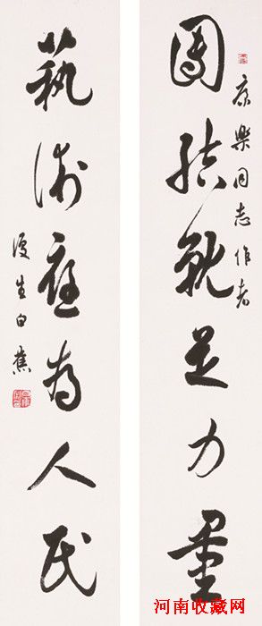 白蕉的书法,极富魏晋风骨,涤尽尘俗,平淡恬静、简易洁净,突出了一个“逸”字。那种独标俊异的风致,雅秀刚劲的资质,飘逸爽朗的韵味,清隽醇厚的格调,在此联中都有所体现。从这一意义上说,此联又堪称是一件艺术珍品。