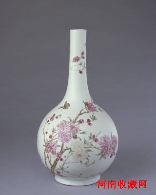 乾隆朝瓷器华贵繁缛在祖、父开创的基础上,乾隆朝不但在政治、经济等领域达到了盛世,在瓷器制造方面也达到了一个巅峰状态。当时的景德镇御窑厂汇集了大量名师巧匠,其生产变得自然化、产业化。同时,督陶官制度也变得高度稳定。乾隆官窑与康熙、雍正相比,其风格既一脉相承,又独具特色。说一脉相承,可以从工艺、画法、纹样以及一些历经两朝,甚至三朝的优秀工匠身上看出来;说独具特色,则是因为乾隆不同于其父,也不同于其祖,他喜欢繁缛热闹、华贵亮丽之风。所以,乾隆官窑瓷在厚重方面不如康熙,隽永方面不及雍正,但是具有华美多姿、繁华似锦的特点。不但精巧新奇,而且极尽 工雅细丽之能事。比如,乾隆朝有一种瓷器叫.百花不露地.。这是一种将各种花卉极尽美态地铺到一件瓷器上,不露一点底色的瓷器。乍看上去,给人一种密不透风的感觉,却极能体现出这位皇帝的喜好。乾隆自身好古成癖,乾隆官窑还有一大特色就是仿古瓷的大量烧造。这种摹古实际上折射了乾隆的一种心态,即想超越古人。摹古之外,乾隆也极力创新,在乾隆朝创烧了很多瓷器新品种。