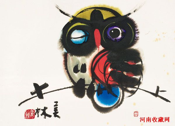 LOT 301 韩美林 《猫头鹰》 38×52cm