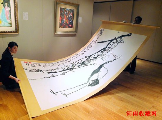 蘇富比专家于中国书画2013年春拍传媒预展上展示丁衍庸《白鹤高飞正待时》(估价:160万至220万港元)