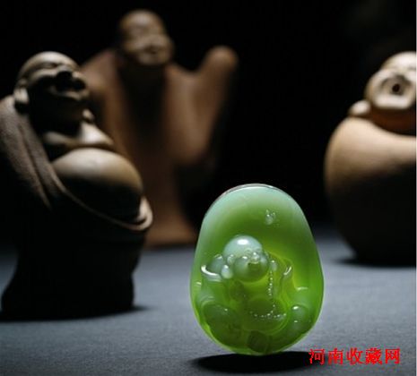 苏州玉雕名家侯晓锋作品 碧玉弥勒