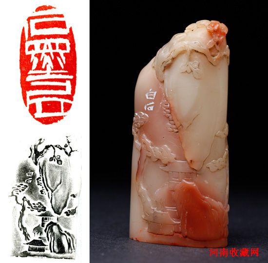 本场更有上好印材数十方,田黄、鸡血、寿山、芙蓉、青田、杜凌、荔枝冻品类各异,论其造型,则狮钮、随形、薄意、对章、方章齐全完备。