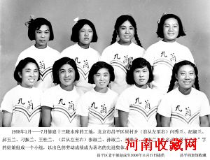 这支自愿、无定额、无报酬的队伍开创了群众自发义务劳动的先河,涌现出大量的劳动模范、先进集体。昌平崔村公社的女社员们也不甘落后,挑选出了九位名字里有“兰”字的妇女组成“九兰组”,闫秀兰、张淑兰、孙淑兰、刁振兰、刘继兰、金淑兰、纪淑兰、郝玉兰、王桂兰,她们年龄最大的22岁,最小的只有17岁。在勇士个个争先,生龙活虎的建设大军中,在堆砌如山的大坝面前,做出千军楷模。