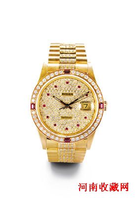 LOT4767封面拍品劳力士DATE JUST系列自动上弦腕表,18K黄金镶嵌钻石及红宝石,闪耀奢华,尽显成功男士的尊贵与潇洒。