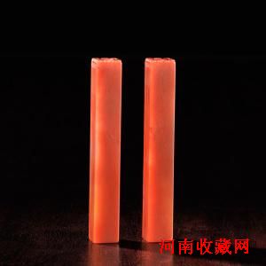 此次寿山石雕珍品夜场在以往的基础上精益求精,更荟萃了郭懋介、陈达、郭祥忍、潘惊石、林文举、林国俤等寿山石雕名家的经典作品。如一枚由郭祥忍创作的杜陵晶石《松鼠》对章,雕刻家因材施艺,巧妙利用巧色雕刻,形象生动,刀工细致,令人啧啧称奇。且石质自然凝结,上有巧色,下方通透,较为难得。另一枚林国俤雕刻的文字双环钮扁章,石质通体洁白,纯净凝润,作者采用博古手法,在章体四周雕刻兽面纹等三代青铜纹饰,并于顶端雕刻两枚活环,稳重大气之中不失精致,更有传统艺术家陈达题字“卧龙”二字,高古清雅,令人赏心悦目。