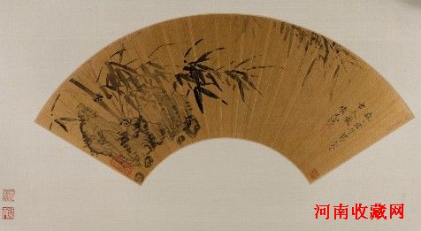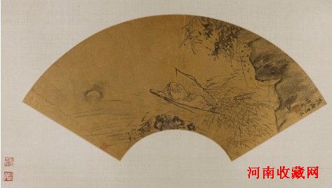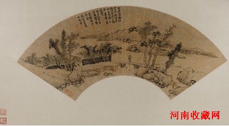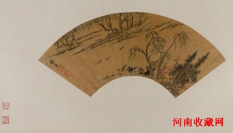 仇氏收藏一如既往要求高品位,将明清以降最具代表性的泥金扇面作为其个人收藏重点。此次“抗希斋遗珍”专题中提供的:沈周《溪桥晚步》作于成化庚子夏,大约是一幅沈周中晚年的作品,笔墨老道,气韵生动。陆治《柳溪飞燕》一水两岸,一双燕子穿插其间,将画面的气氛拉阔拉远,生动异常。项元汴《孤松图》老气横秋,笔致高雅,笔所未到气已吞。许友《垂钓》承袭浙派以来的笔墨,一路挥洒。特别值得指出的是,这批“抗希斋遗珍”的仇氏藏品均是品相保存完好,堪称极致。并且在每一枚上均钤有“抗希斋”、“炎之藏扇”,枚枚可爱,珍可宝玩也。