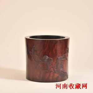 《梅雀争春》紫檀笔筒(福建东南2013春拍拍品)
