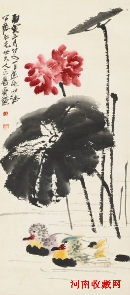 齐白石 荷花鸳鸯图 镜框 设色纸本