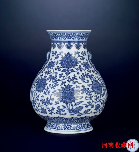 清雍正 青花缠枝莲纹如意绶带耳琵琶尊
