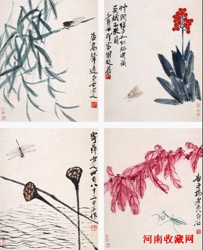 歌德拍卖2013春拍精品赏析:齐白石《花卉草虫册页》 35.3×28.2cm×4 约0.9平尺