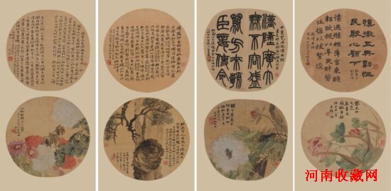 赵之谦(1829-1884) 纨扇书画四条屏