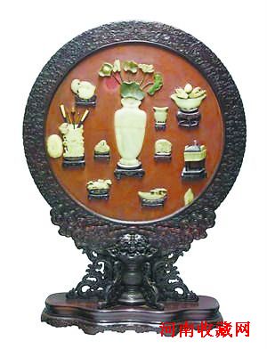 清乾隆御制 紫檀漆地嵌玉 圆光座屏