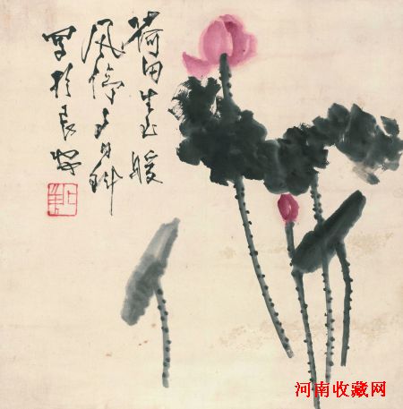 石鲁五六十年代曾多次深入西北各地及陕南秦岭林区、三门峡水库工地,创作具有生活气息和时代感的作品。石鲁《三门峡工地写生》正是其“一手伸向传统,一手伸向生活”的代表作品,吊车与建筑工事和三门峡天险的自然景观融为一体十分壮观。另两件《荷田玉暖》与《国色超香》绘荷花与牡丹,鲜艳的色彩是内心的呐喊,犀利的笔法如刀刻刃勒,墨色酣畅,痛快沉着。行书《题西林壁》手录苏轼诗稿亦是难得一见的石鲁书法佳制。