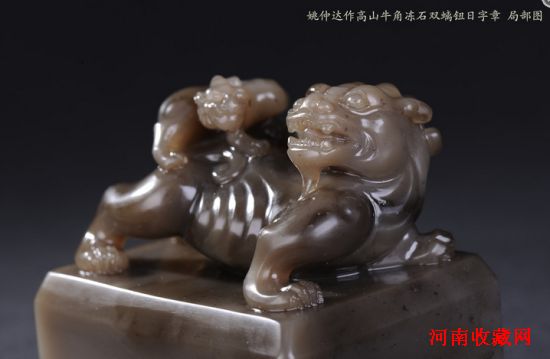 福建东南2013春拍•寿山石雕精品专场拍品•姚仲达作高山牛角冻石双螭钮日字章